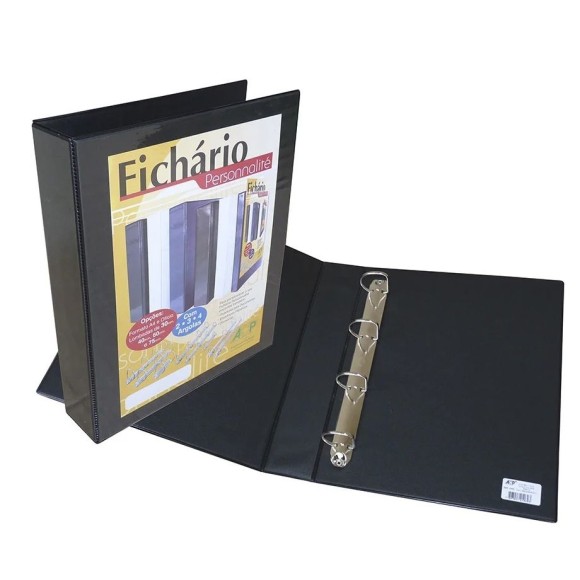 Fichario Plastico Simples Preto 4 Argola Ref 3340 Pt ACP