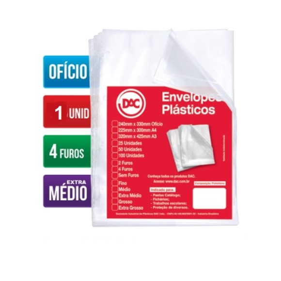 O envelope plástico 4 furos médio (0,10) é um item de embalagem ideal para proteger documentos, fotos e outros materiais de maneira segura e prática. Feito de plástico resistente, ele oferece maior durabilidade e proteção contra umidade e rasgos.
